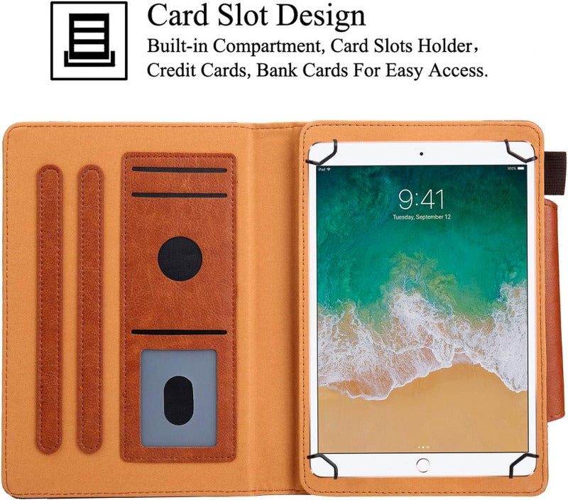 Universal PU Leather Folio Stand Cover with Cards Slots Case For 9.0"-10.5" Tablet