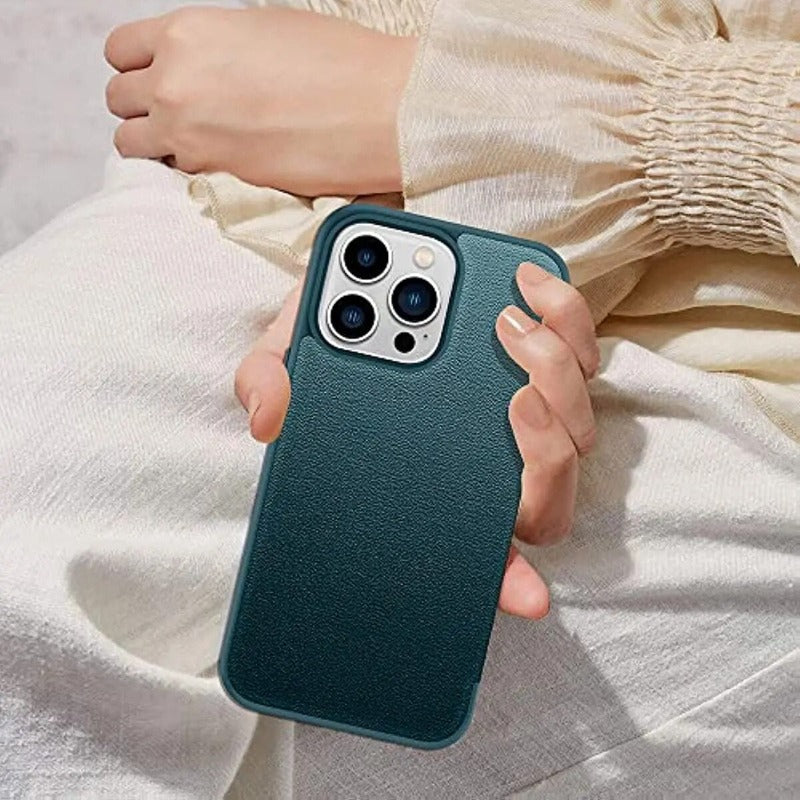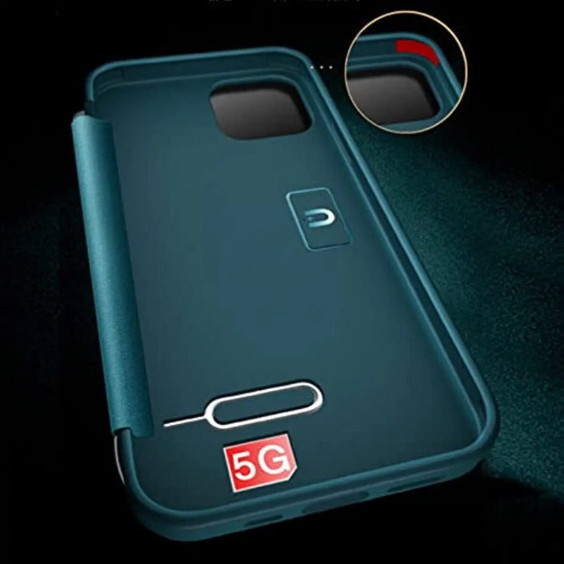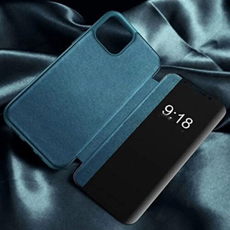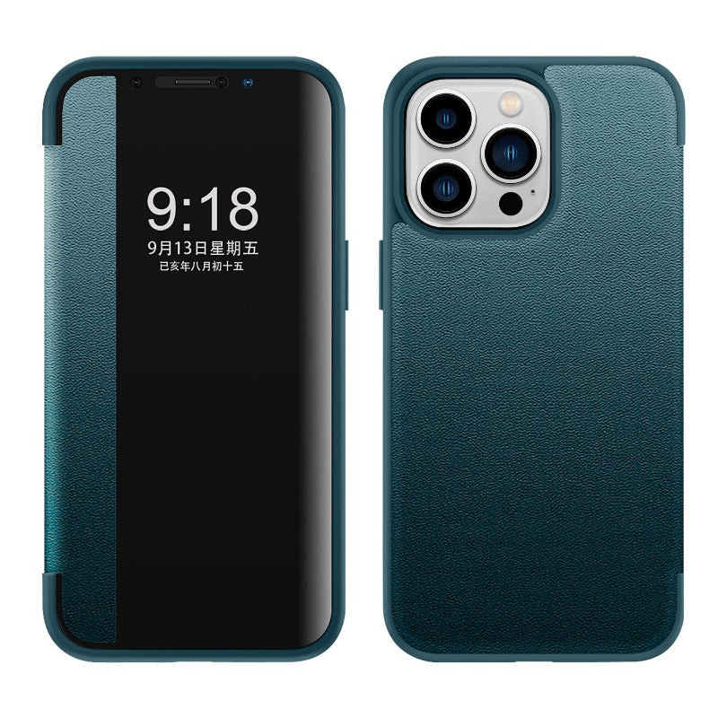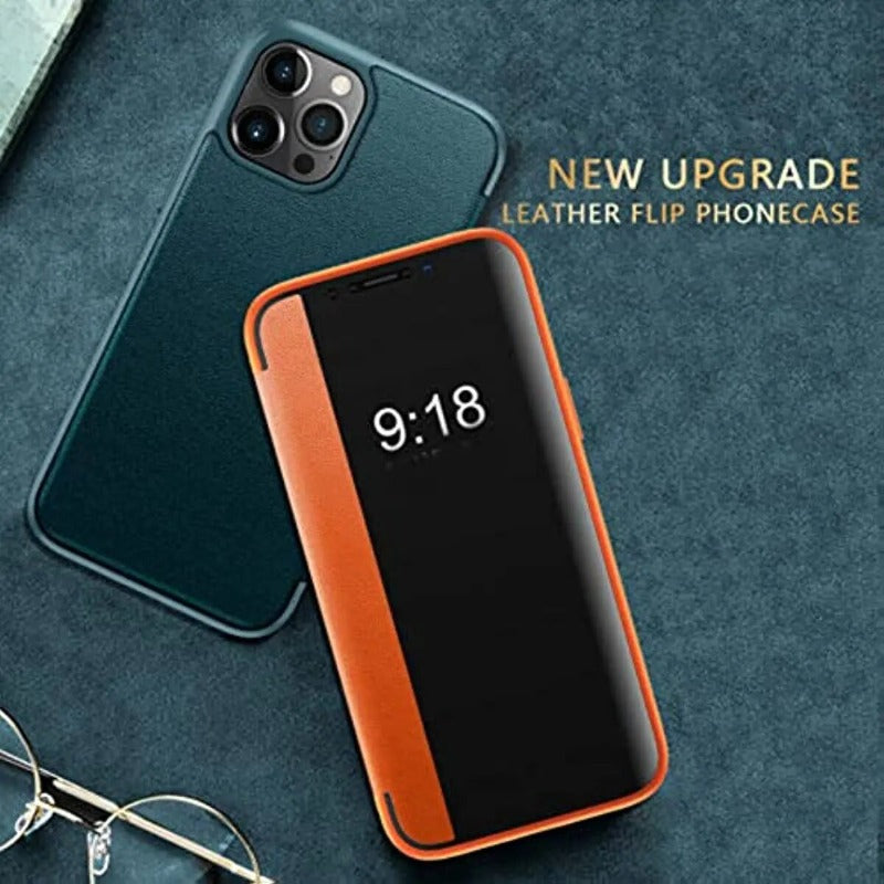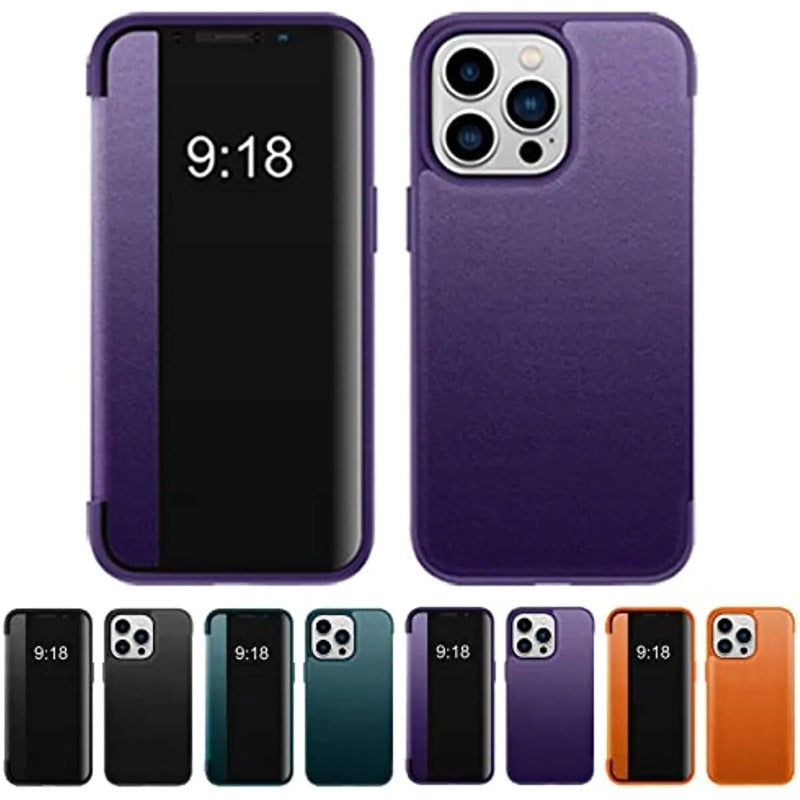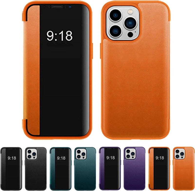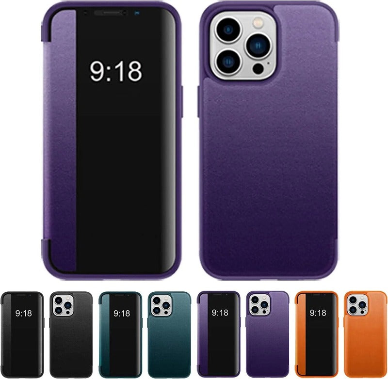 View Window Business Plain Leather Flip Phone Case For iPhone