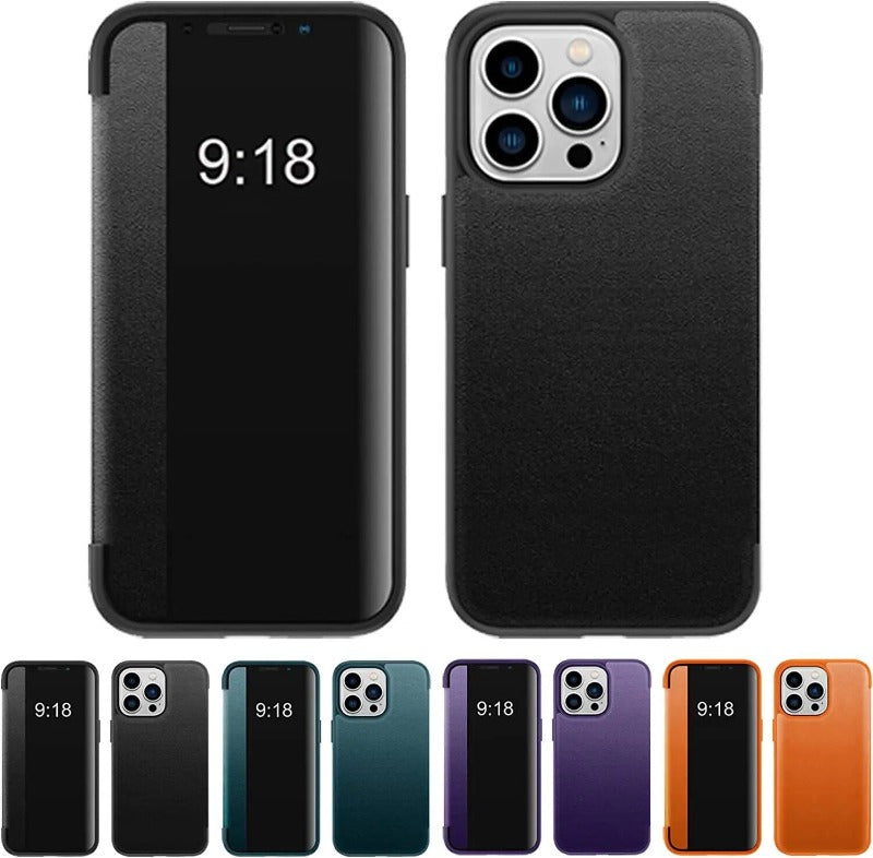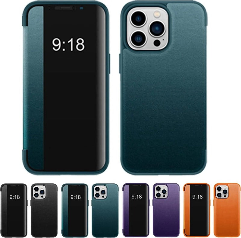 View Window Flip Folio Case For iPhone 15 Pro Max Business Shockproof Lens Protector For 15 14 Plus Leather Cover