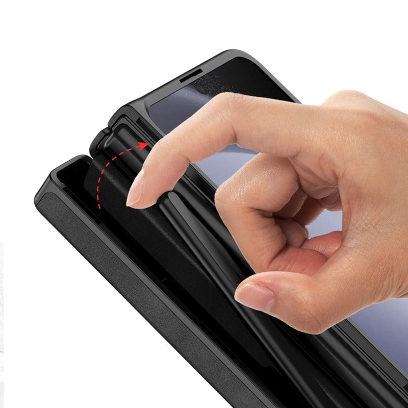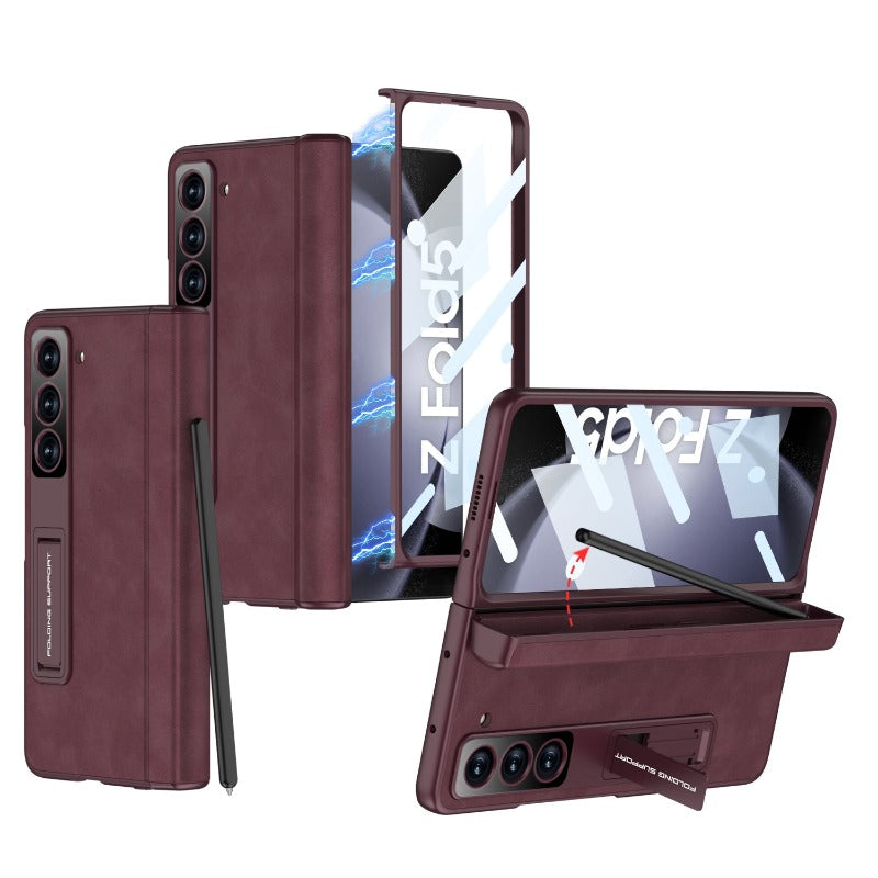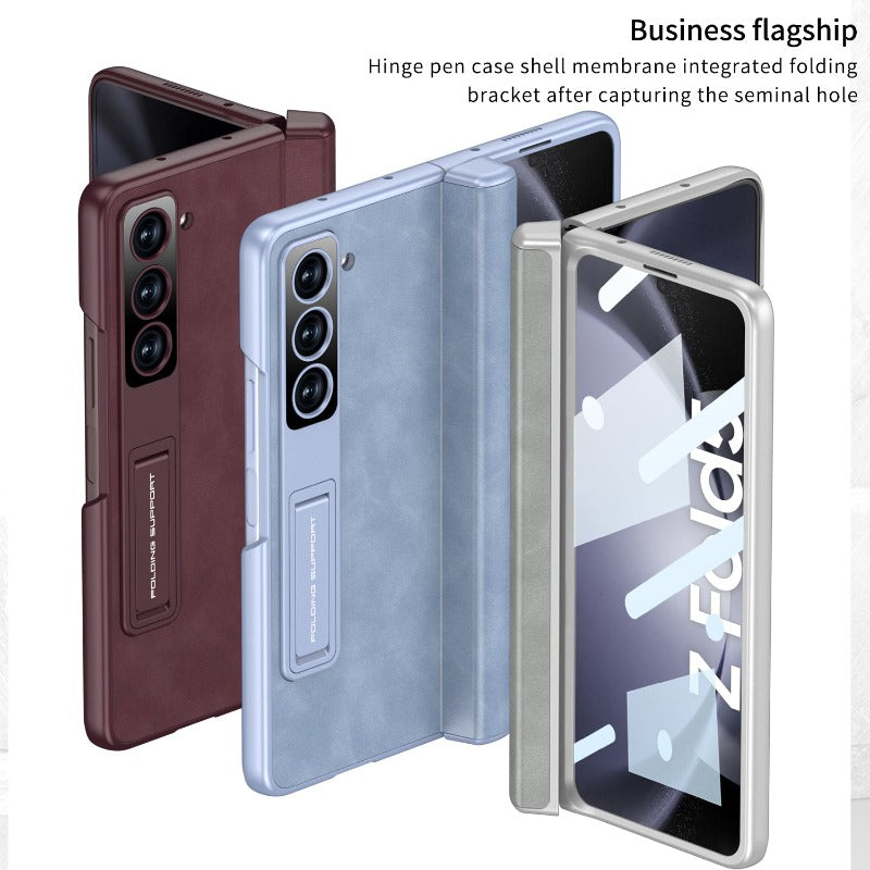 With Hinge Pen Holder Leather Phone Case With Screen Film For Samsung Galaxy Z Fold 5