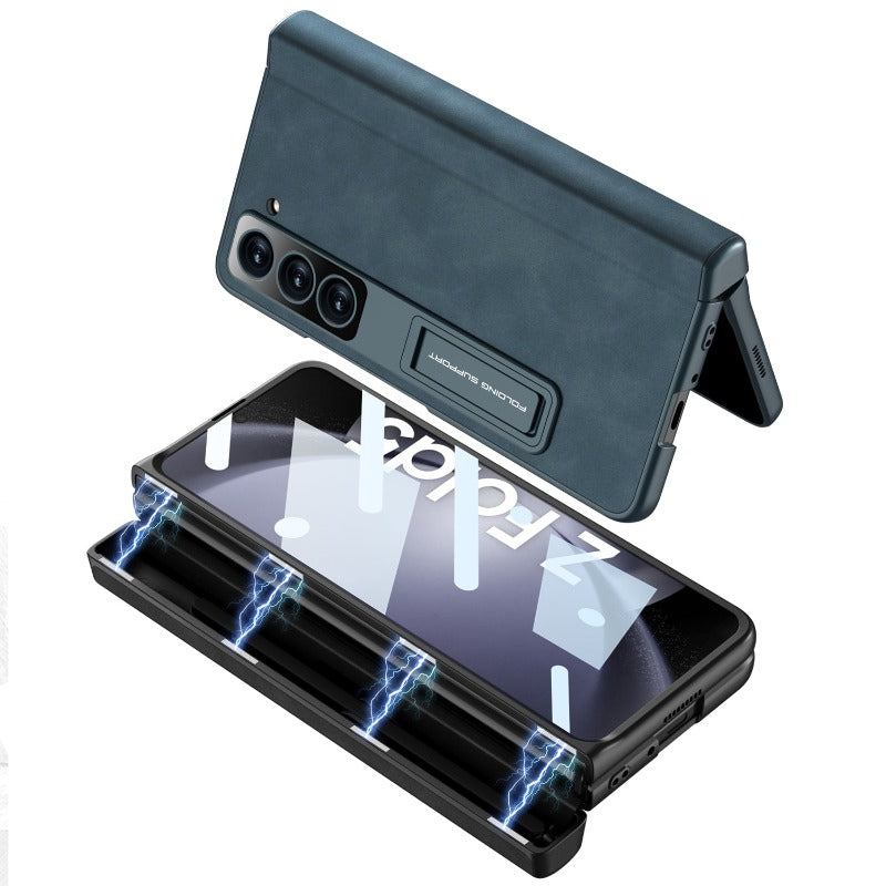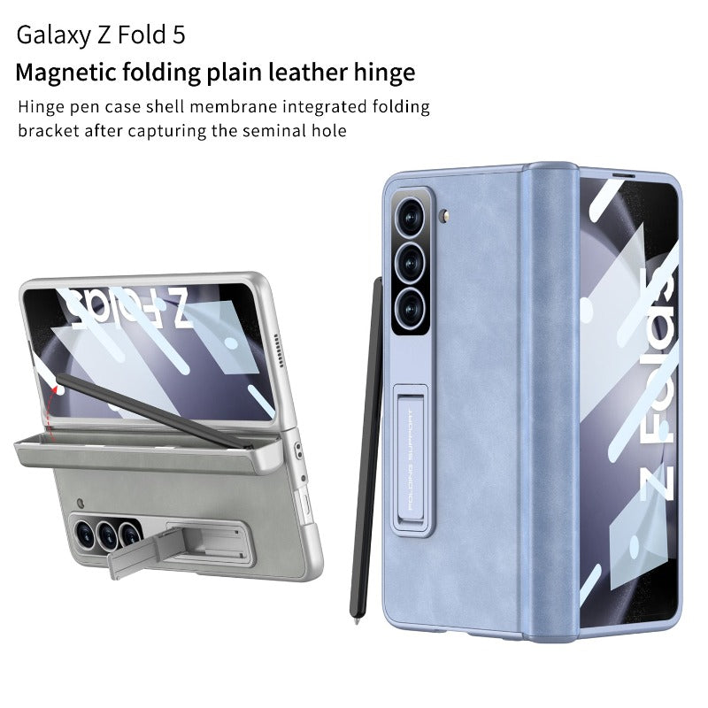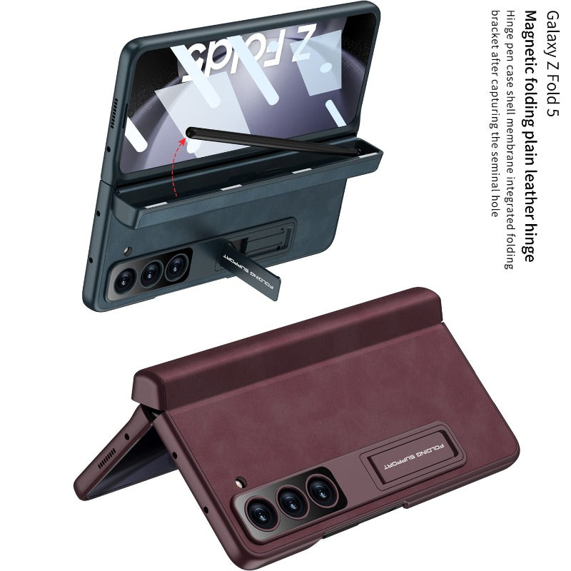 For Samsung Galaxy Z Fold 5 Case Magnetic Hinge Pen Holder Capa For Z Fold5 With Leather hard pc Stand Screen Film