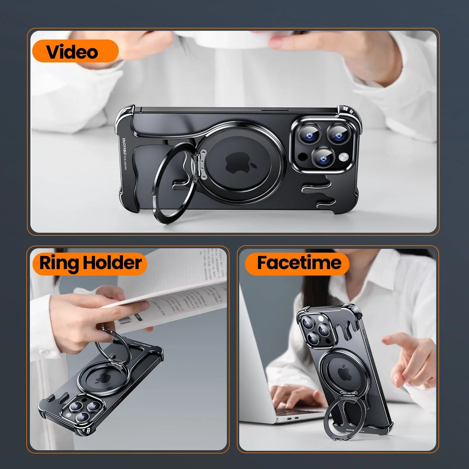 With Magnetic Stand Irregular Frameless Liquid Metal Shockproof Minimalist Phone Case For iPhone