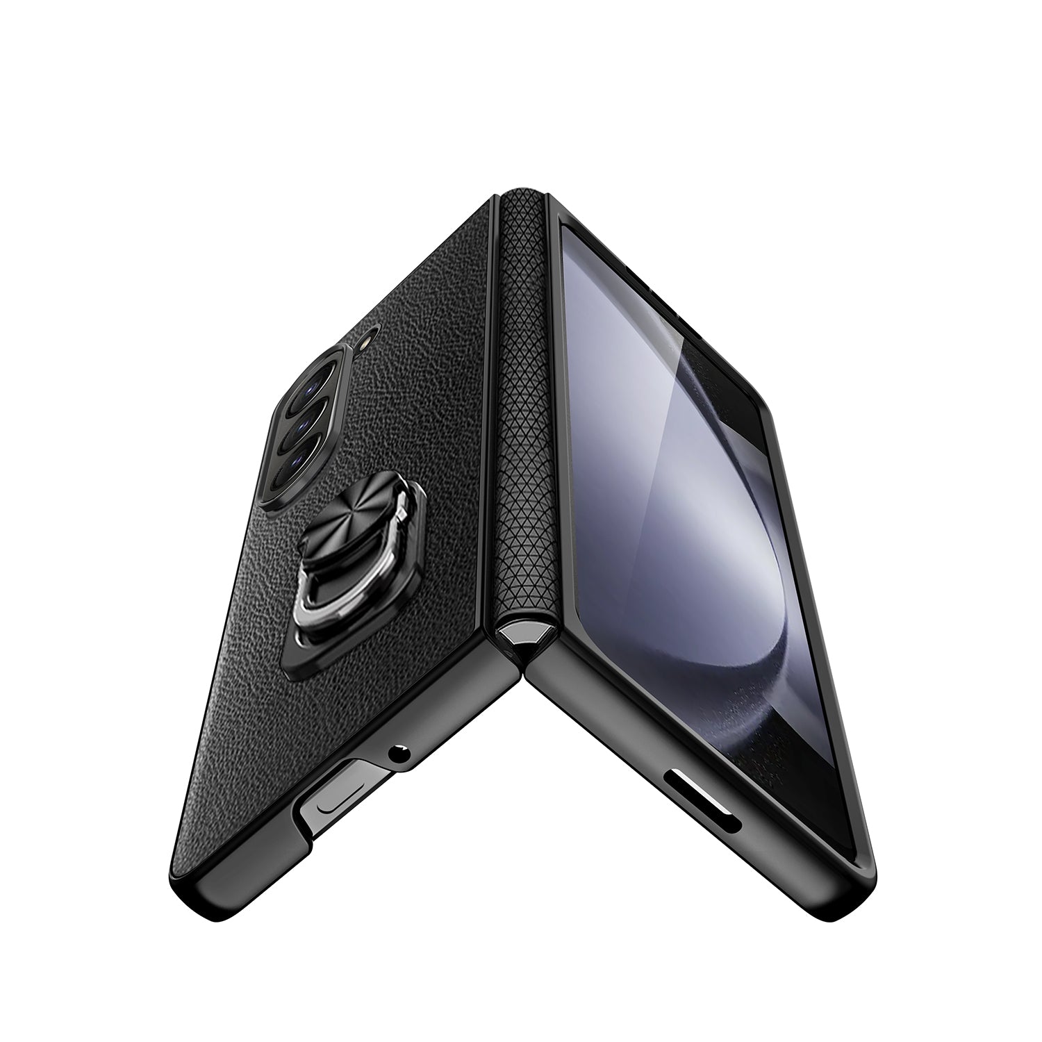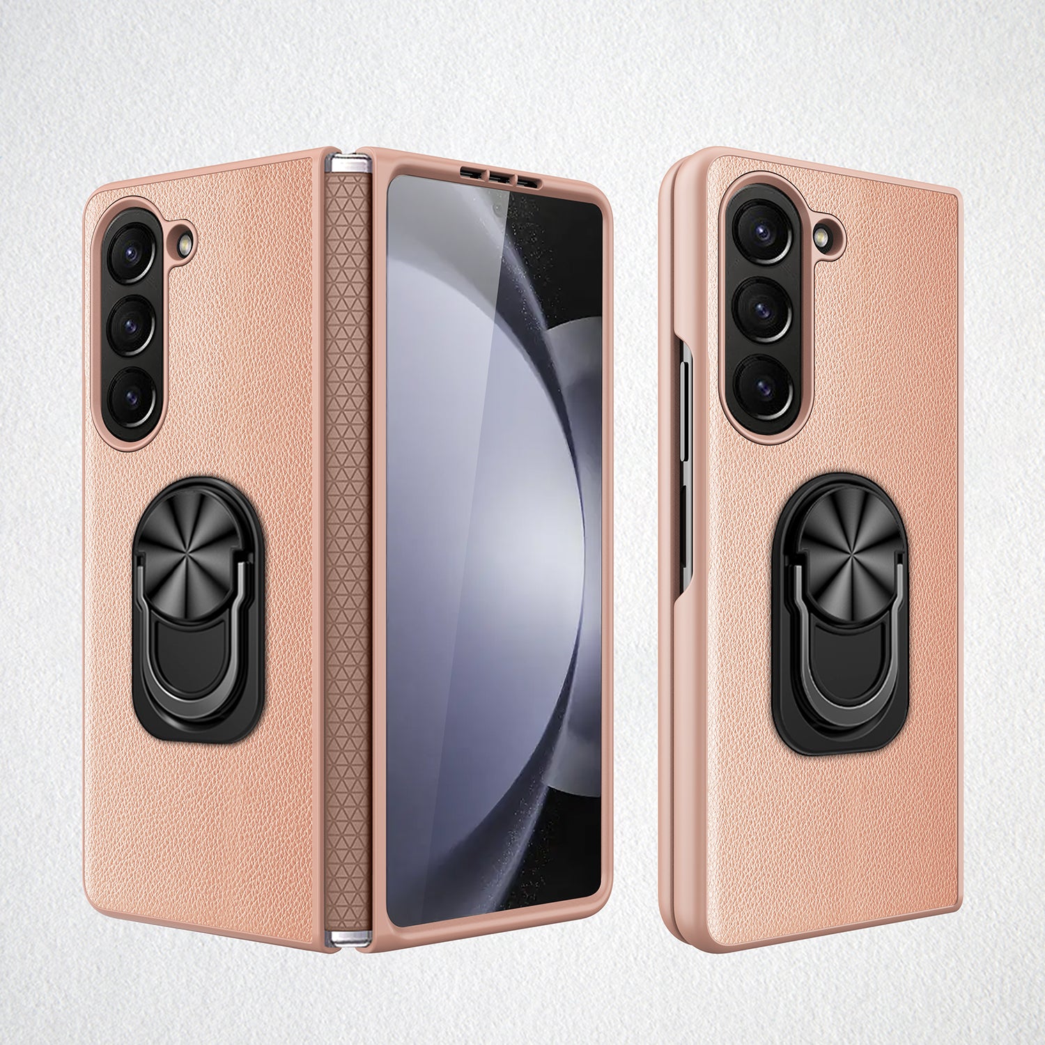 With Ring Holder Lychee Pattern Leather Folding Hinge Phone Case For Samsung Galaxy Z Fold 5 4