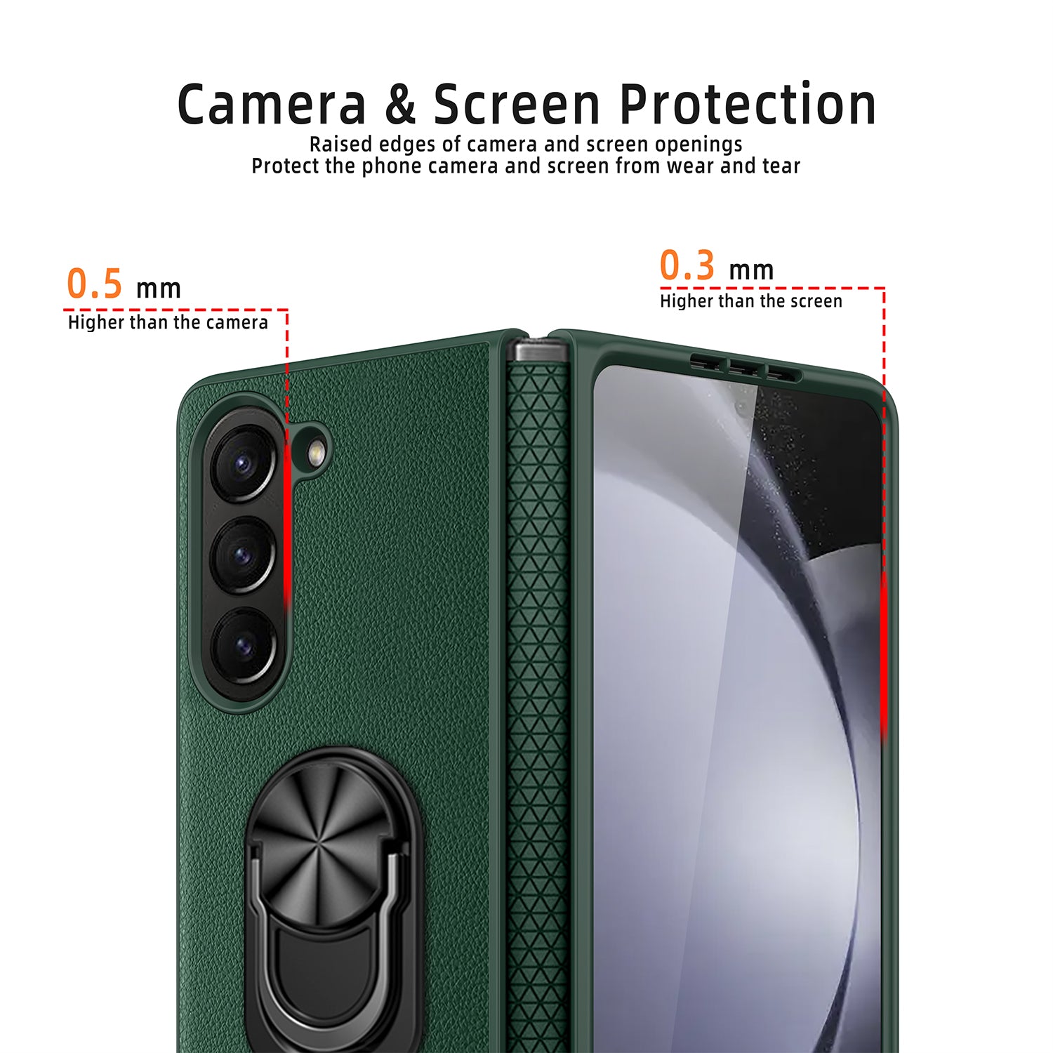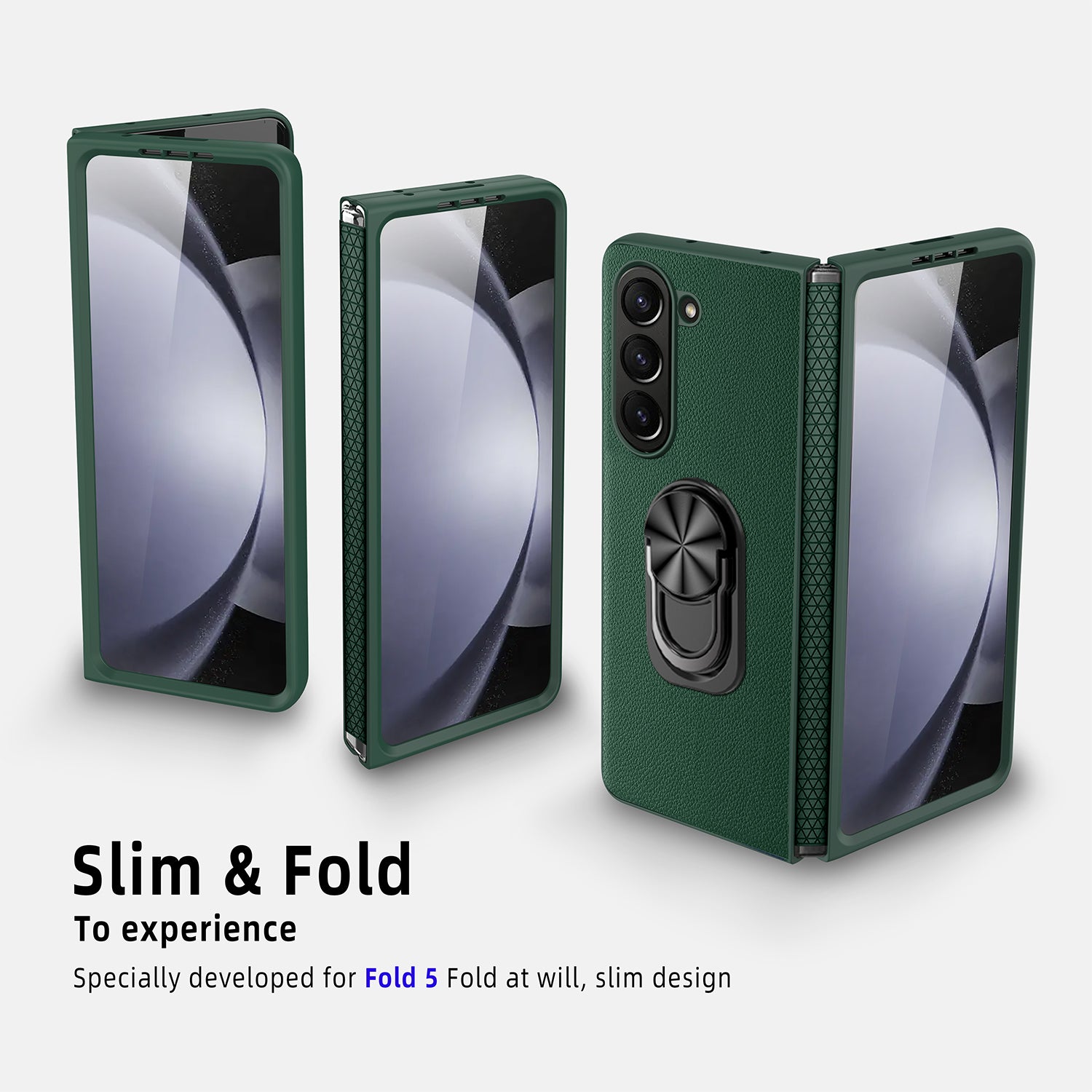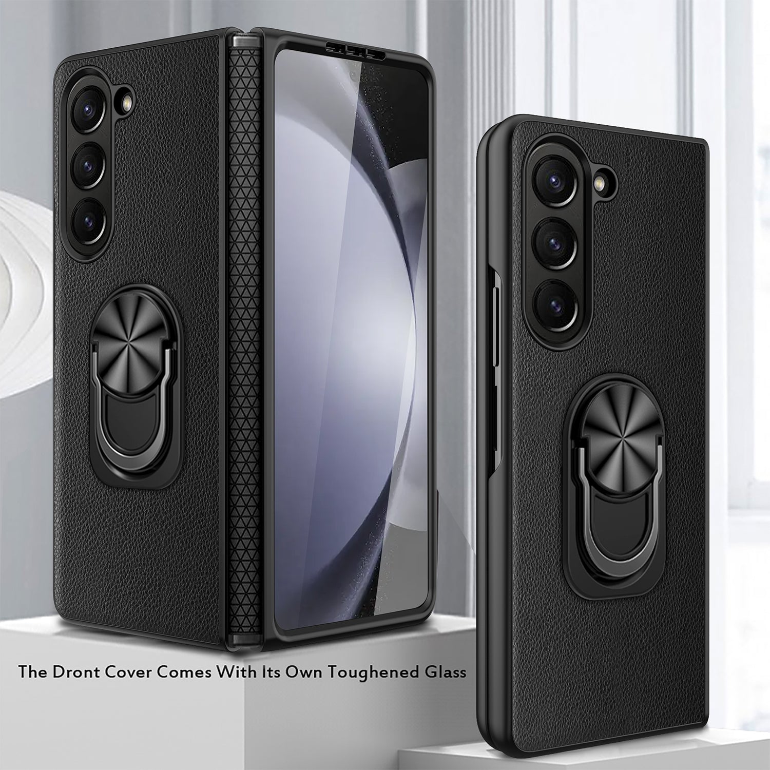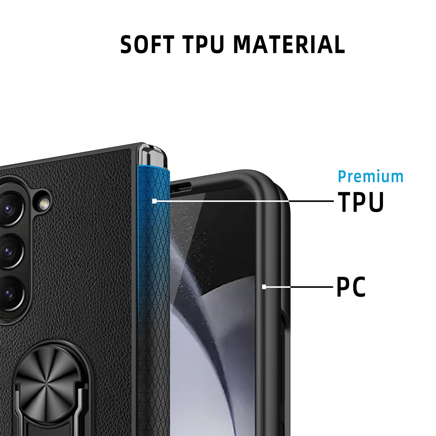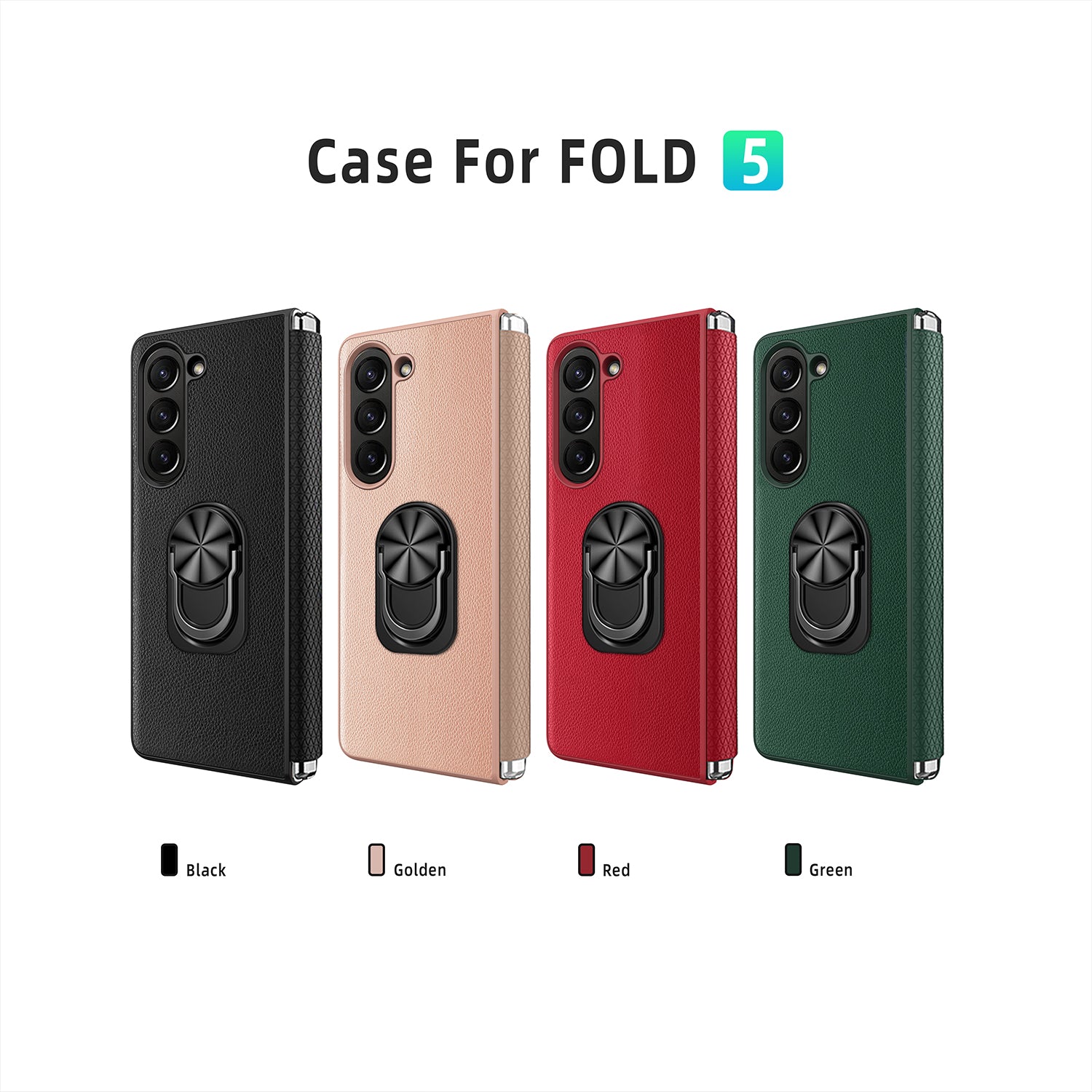 For Samsung Galaxy Z Fold 5 4 Case Luxury Lychee Pattern Leather Ring Holder Folding Hinge Screen All-inclusive Shockproof Cover