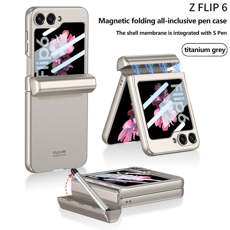 With S Pen Holder Hinge Magnetic Case For Samsung Galaxy Z Flip 6