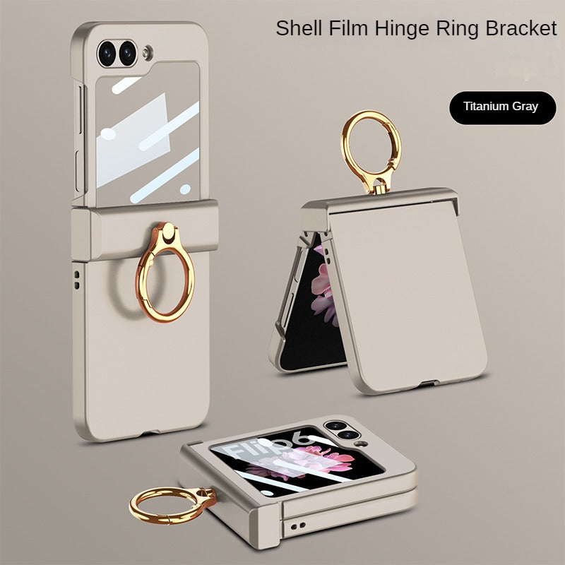 With Tempered Glass Ultra-thin Matte Case Hinge All-inclusive Ring Holder for Samsung Galaxy Z Flip 6