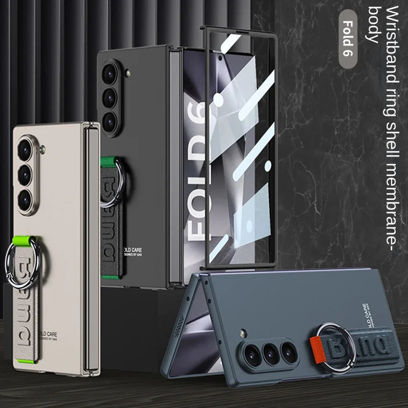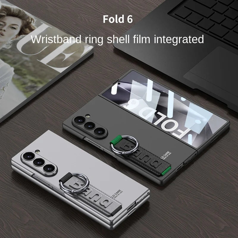 Wrist Strap Ring Holder Phone Case for Samsung Galaxy Z Fold 7 6 Hard Shell Fall Prevention Shockproof Cover