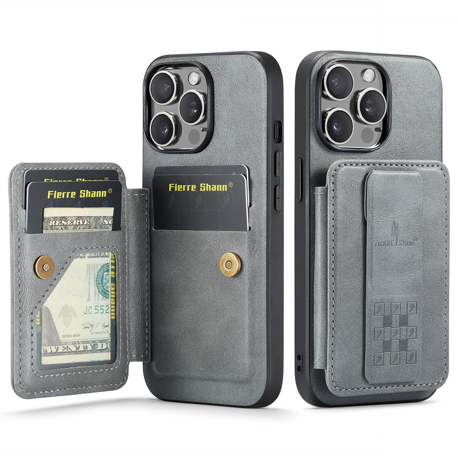 RFID Blocking Card Holder Wallet Case For iPhone 16 Pro Max 15 14 Plus 13 Magnetic Retractable Wristband PU Leather Cover