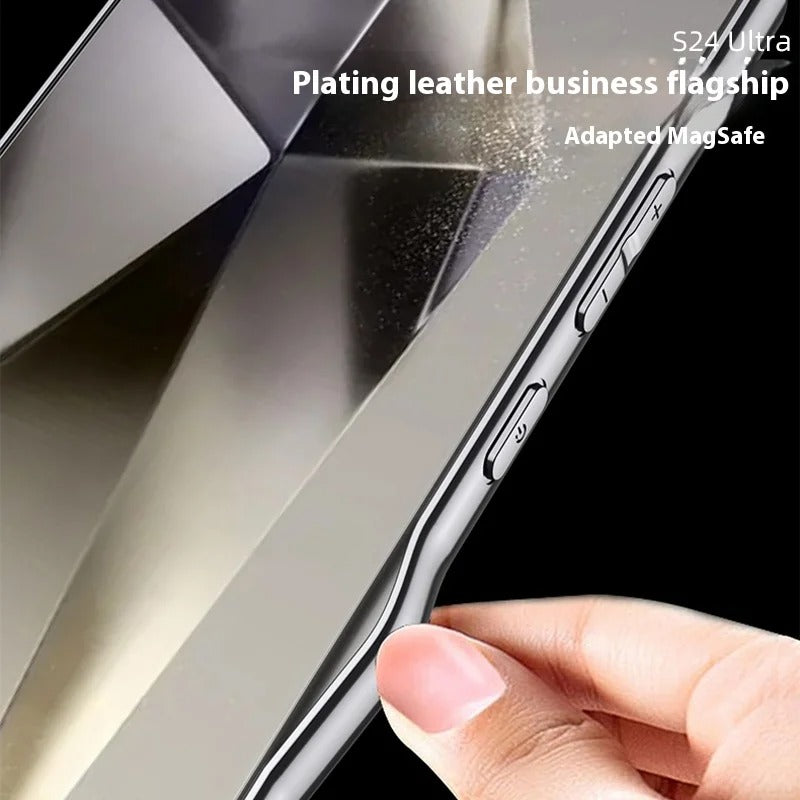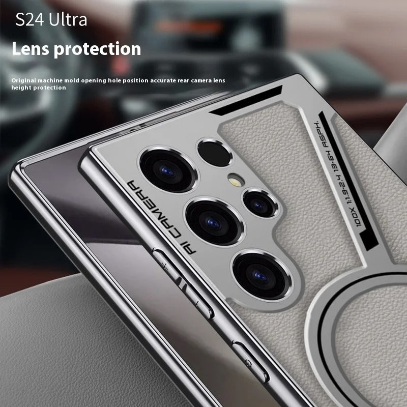 For Samsung Galaxy S24 S23Ultra Leather plating Case Z-shaped Magnetic Wireless Charging Anti Drop Cases Drop Protection Cover